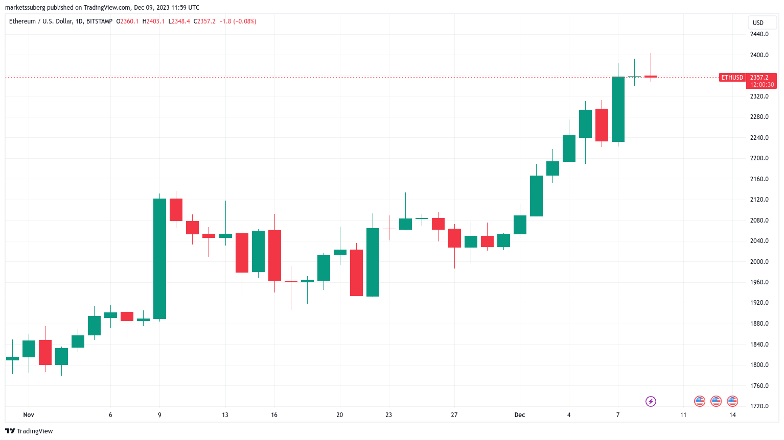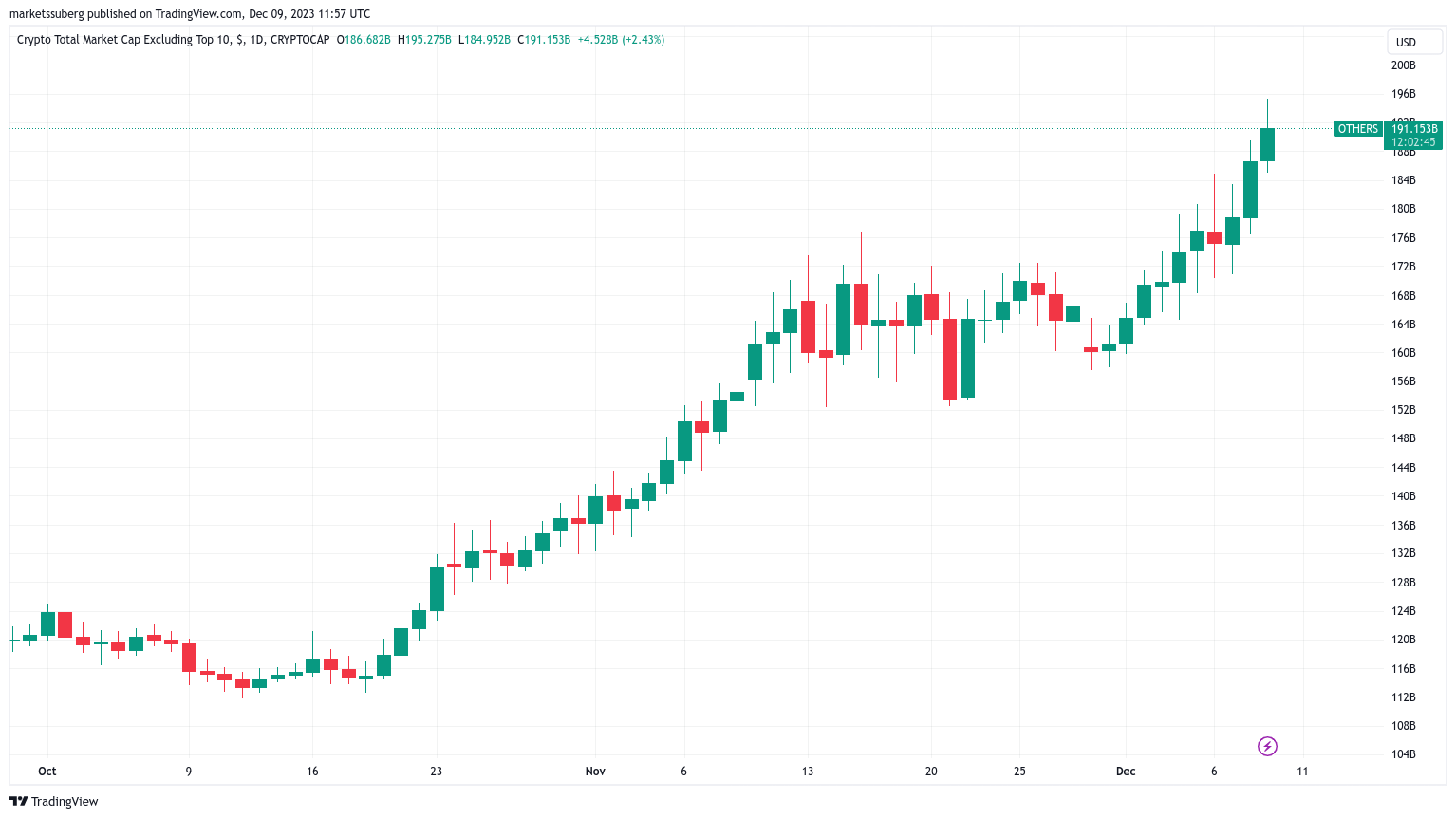 当天,altcoin总市值上涨了2.4%,12月至今的涨幅为18.4%。