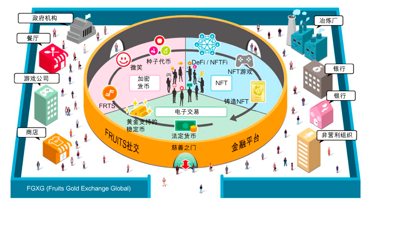 为建立一个包容性的金融体系并支持慈善事业,Fruits开发了一个名为“FRUITS社交金融平台”的数字汇款生态系统。其中包括一个专注于金融交易的加密货币交易所、一个多币种FRUITS钱包和一个慈善众筹平台。