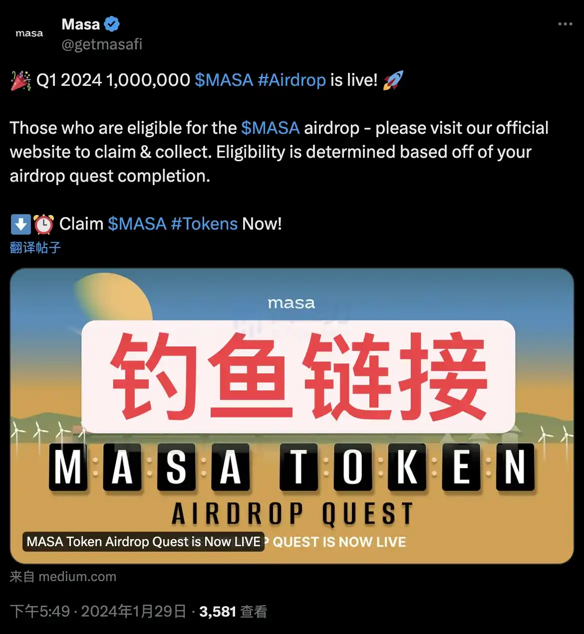 1 月 29 日,zk-data 市场 Masa 官方推特帐号被盗,并发布虚假空投链接。请用户注意安全,保护个人财产。