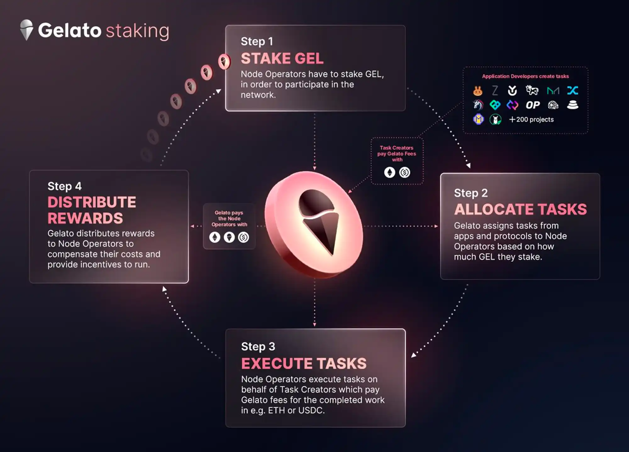 GEL 为 Gelato 的原生代币,目前代币经济学依然以 Automate 业务为主,还未赋能于 RaaS 业务。