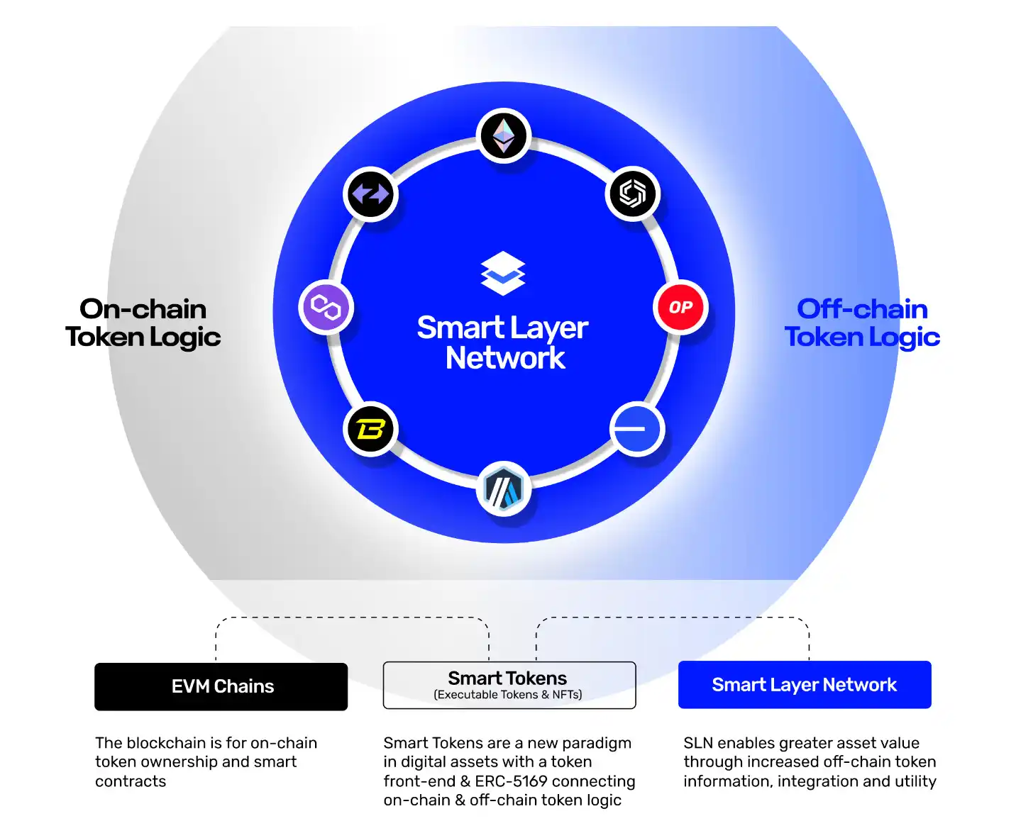 Smart Layer 是一个可编程的区块链服务网络,为执行代币逻辑提供支持,从而以去中心化、可扩展及安全的方式实现与各种系统和代币的复杂交互。Smart Layer 基于 TokenScript 技术创造了 Executable Token。Executable Token 是一种具有内置可运行代码的 NFT 或 Token,它不仅仅是一个静态的数字资产,还能够执行各种功能。