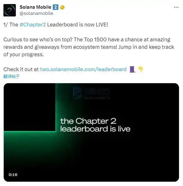Solana Mobile 上线 Chapter 2 排行榜,将对其排名进行快照并发放 SBT NFT