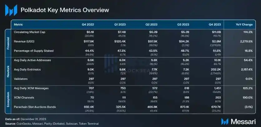 Polkadot 2023 年 Q4 状态报告:DOT 的流通市值环比增长 111%