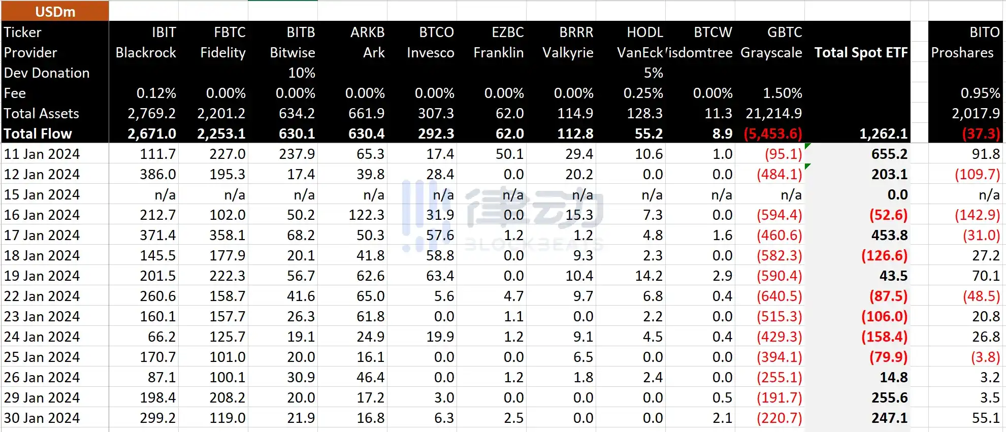 据 BitMEX Research 数据,比特币现货 ETF 第 13 个交易日资金净流入达 2.47 亿美元,其中: 灰度 GBTC 资金流出约 2.21 亿美元; 贝莱德 IBIT 资金流入约 2.99 亿美元; 富达 FBTC 资金净流入为 1.19 亿美元。