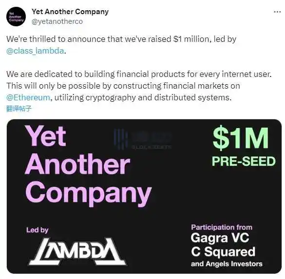以太坊基础设施初创公司 Yet Another Company 完成 100 万美元融资,LambdaClass 领投