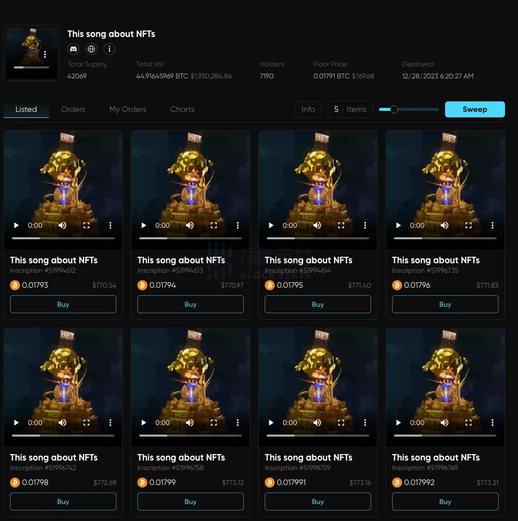 这首关于 NFT 的歌曲由 Elon Musk 在社交媒体上发布,在当时引起了广泛的讨论和兴趣。2023 年 12 月 27 日,Elon Musk 在 Twitter 上发布了这段音乐视频,并声称「ETH 上的 NFT 不是链上的」。之后社区将该视频上链,总供应量为 42069。BRC-420 用到了 meme 的力量。