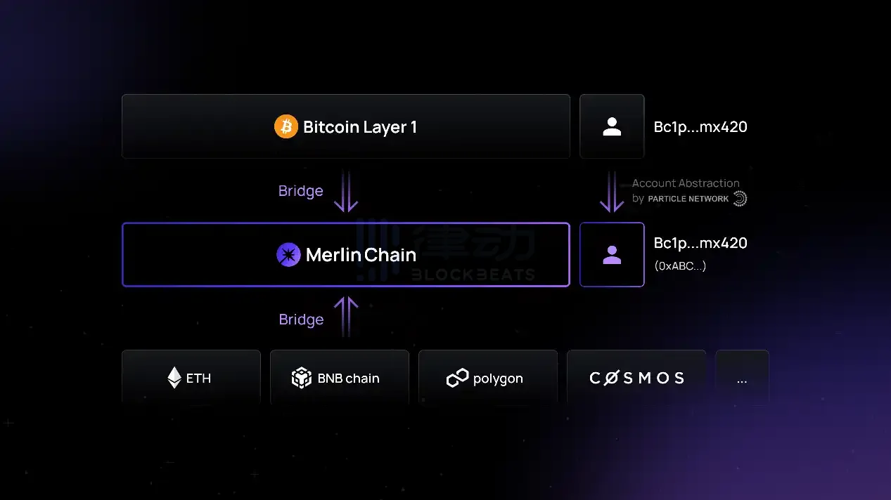 比特币一层的交互对于新用户具有一定门槛,限制了新资金的涌入。Merlin 希望二层成为用户的「起点」,用户无论是存入 BTC 还是 USDT/USDC/ETH/BNB 等代币,都可以在 Merlin 上体验 BTC 的原生玩法。