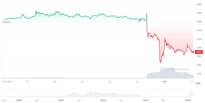 FTX 的原生代币 FTT 在公司的这一计划公布后短暂上涨,但随后急剧下跌。几日前,FTT 的价格一直在 2.65 美元左右短暂波动,然而如今已经来到了 1.91 美元左右,最低点来到了 1.65 美元, 7 日跌幅达到了 27.04% 。