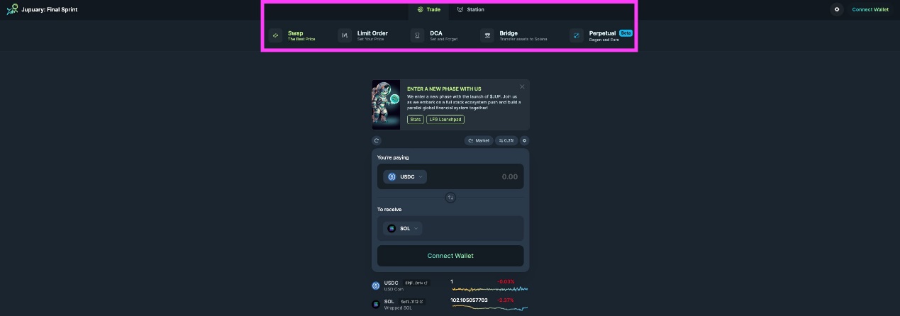 · Jupiter 支持 Solana 上的大多数钱包,例如 Phantom 等一些多链钱包。