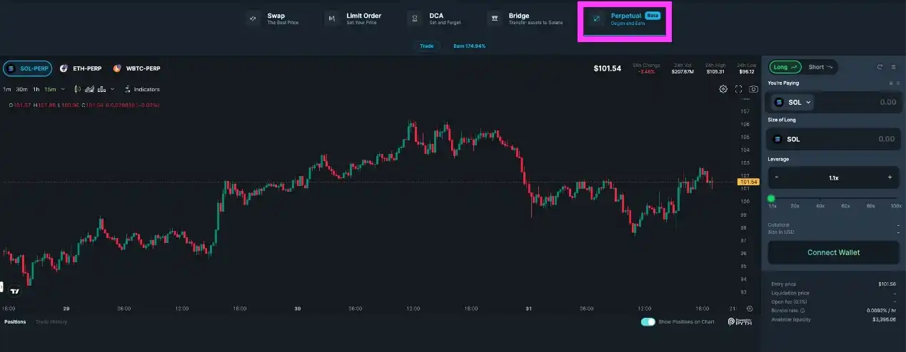 接下来,选择要交易的代币对和代币数量。Jupiter 会为你在 Solana 找到最便宜的交易路径。