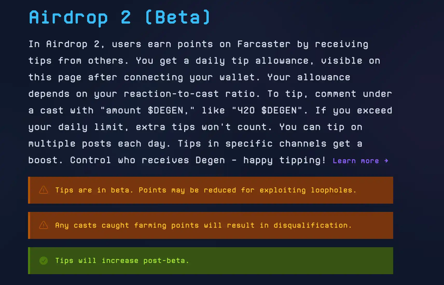 从本质上看,Degen 是一个 MEME 代币,更多在鼓励加密 degen 们在 Farcaster 上讨论投机信息。但如今 Degen 也从一众空投代币中杀出重围,成为了加密媒体近期关注的焦点。
