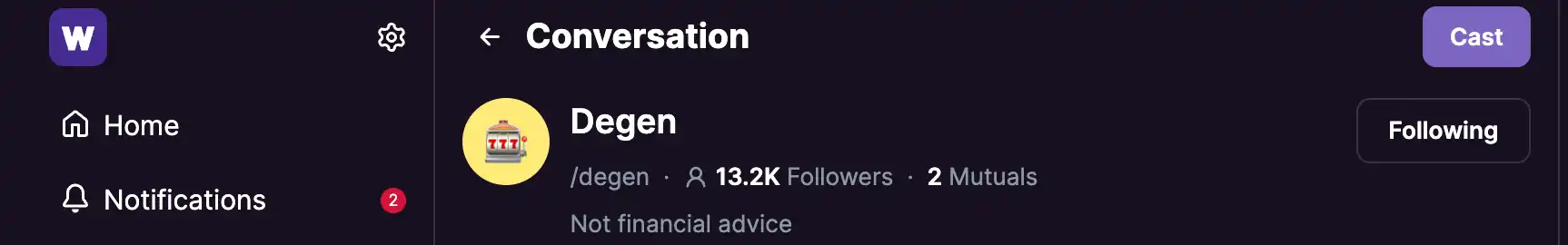 币如其名,该代币更多包含着投机意味,同时也是 Farcaster 生态中目前的代币龙头。