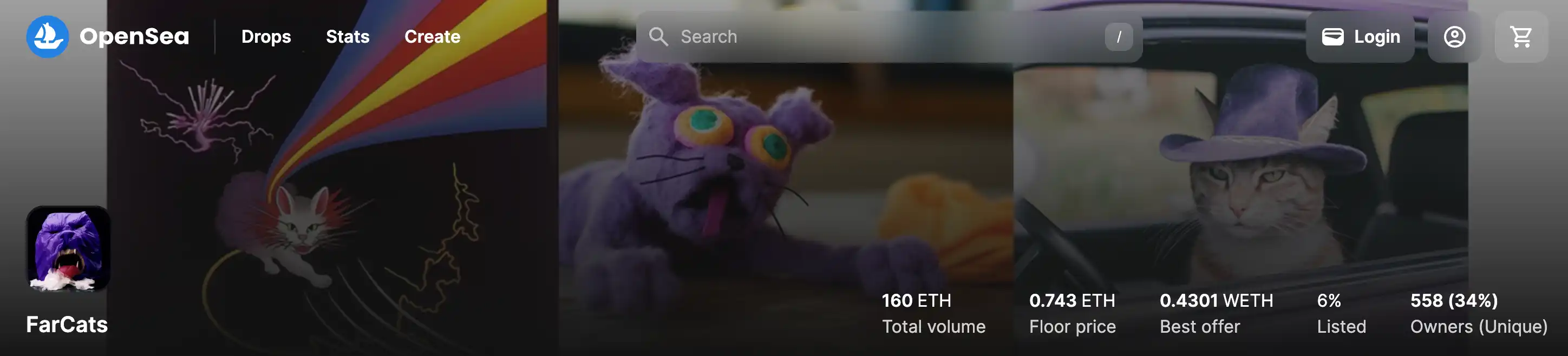 以猫形象为主的 NFT 系列,官方描述其为 Farcaster 的吉祥物,以 1661 个独特且可收藏的 NFT 的形式出现。当前地板价为 0.7E 左右