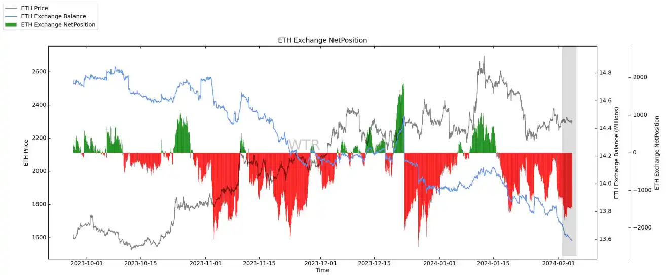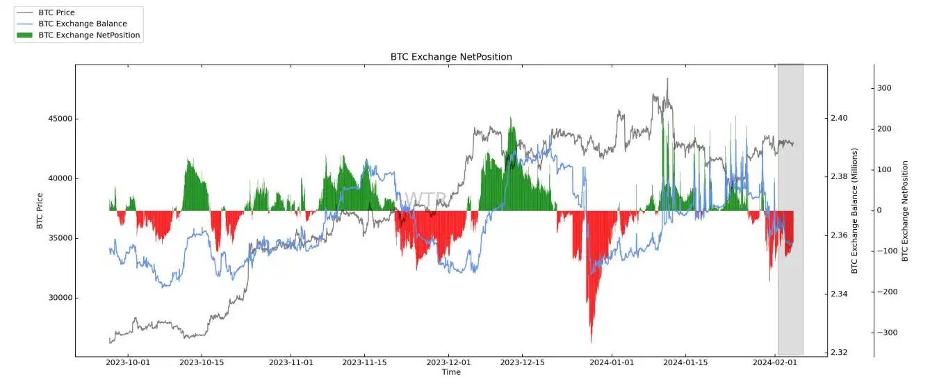 4. 交易所净头寸整体呈现大量流出累积状态,抛压较低。