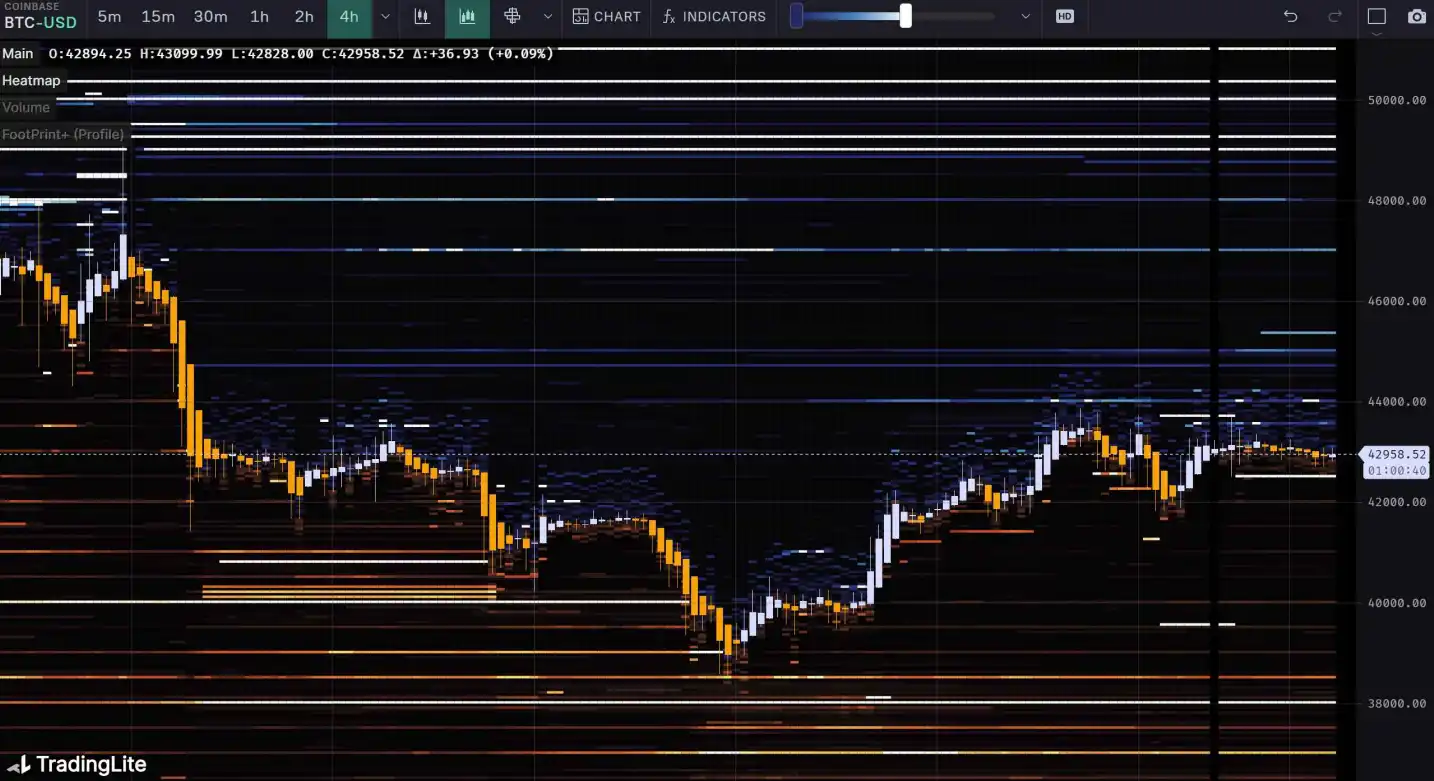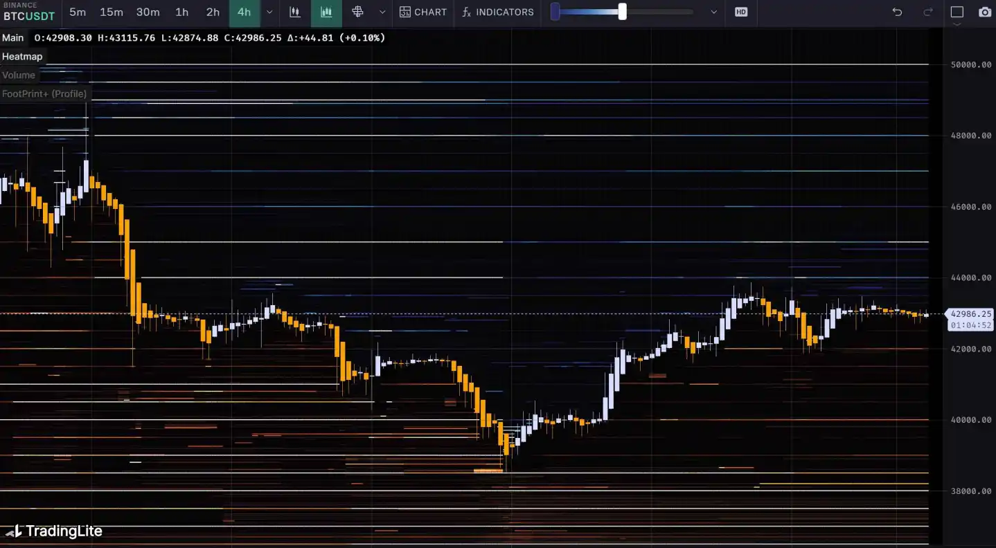 本周从 1 月 29 日到 2 月 5 日,冰糖橙最高附近 $43882,最低接近 $41804,震荡幅度达到 4.97% 左右。观察筹码分布图,在约 42000 附近有大量筹码成交,将有⼀定的支撑或压力。