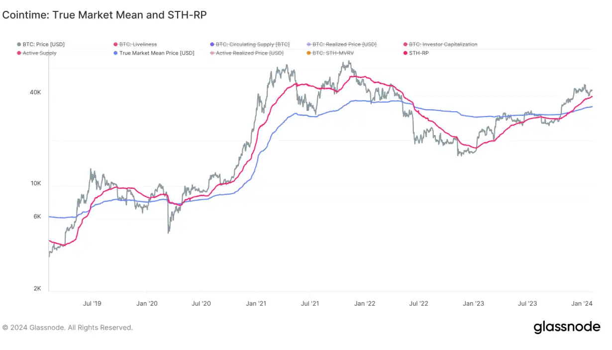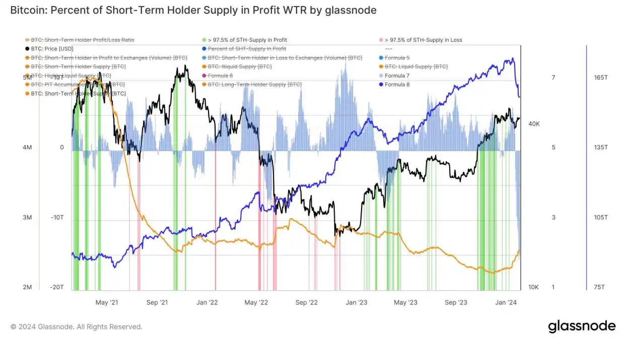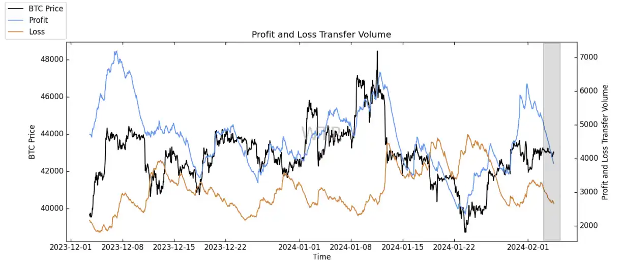 短期持有者成本当前为 39K。当前价格与短期持有者成本线越来越接近,且观察筹码图来看,当前价位累积了大量筹码,后续持续关注亏损筹码转移情况。