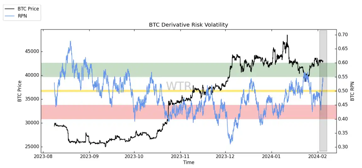 与上周预期⼀致,持续性震荡。风险系数本周来到安全区域附近,形成了⼀定的往下轧空空间。