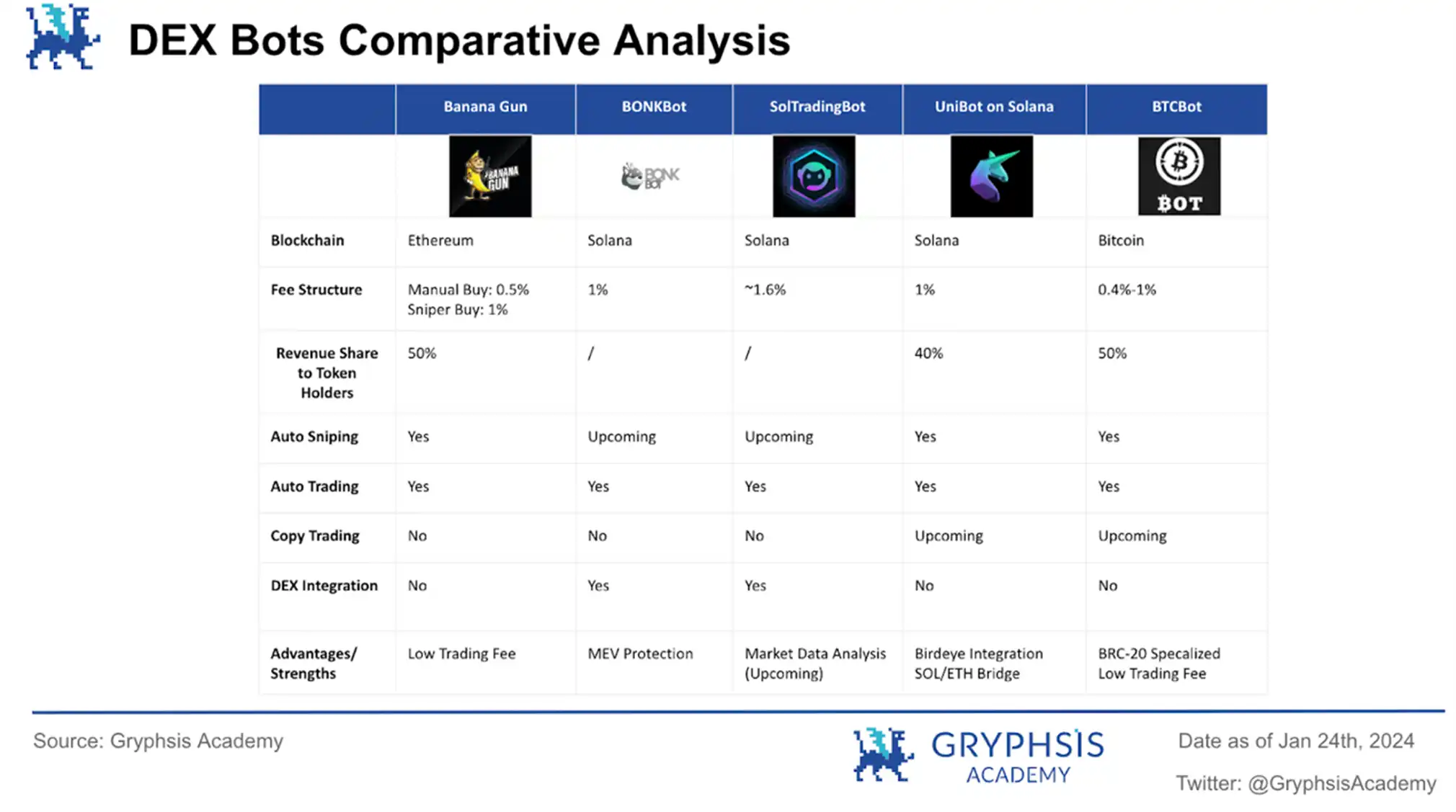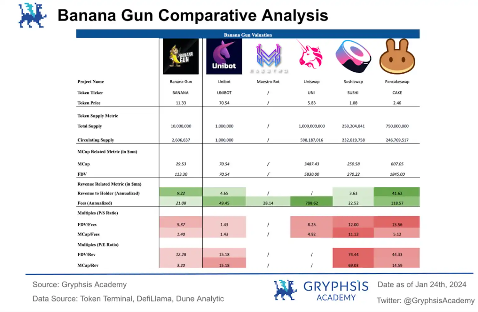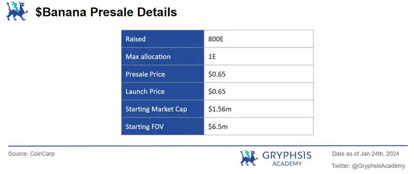 特别是考虑到交易机器人专案与去中心化交易所之间的关联性(前者是 Uniswap 的仿盘),这增加了比较分析的可靠性。透过这样的比较,我们可以更准确地评估 $BANANA 的市场价值和投资潜力。