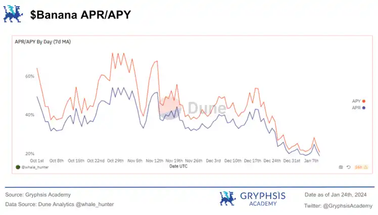 然而,考虑到过去项目方进行代币回购的资金主要来源于代币税收,目前项目方已暂停了此类回购活动。未来,$BANANA 代币的持有者将扮演更加关键的角色,他们将直接参与决定是否继续采用代币的通缩策略。