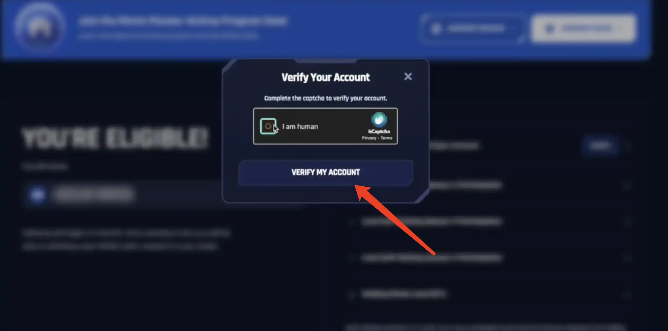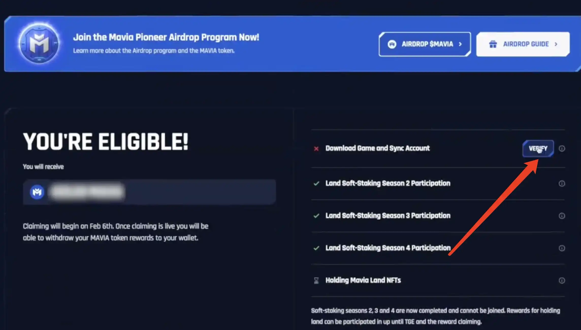 STEP 6. 在 Mavia Airdrop 页面上,点击「Verify」以确认帐户已正确同步。经过反机器人验证码后,如果同步成功,将看到一个弹出窗口,显示「Account Verified」!完成此步骤后,该账户的空投即被确认。