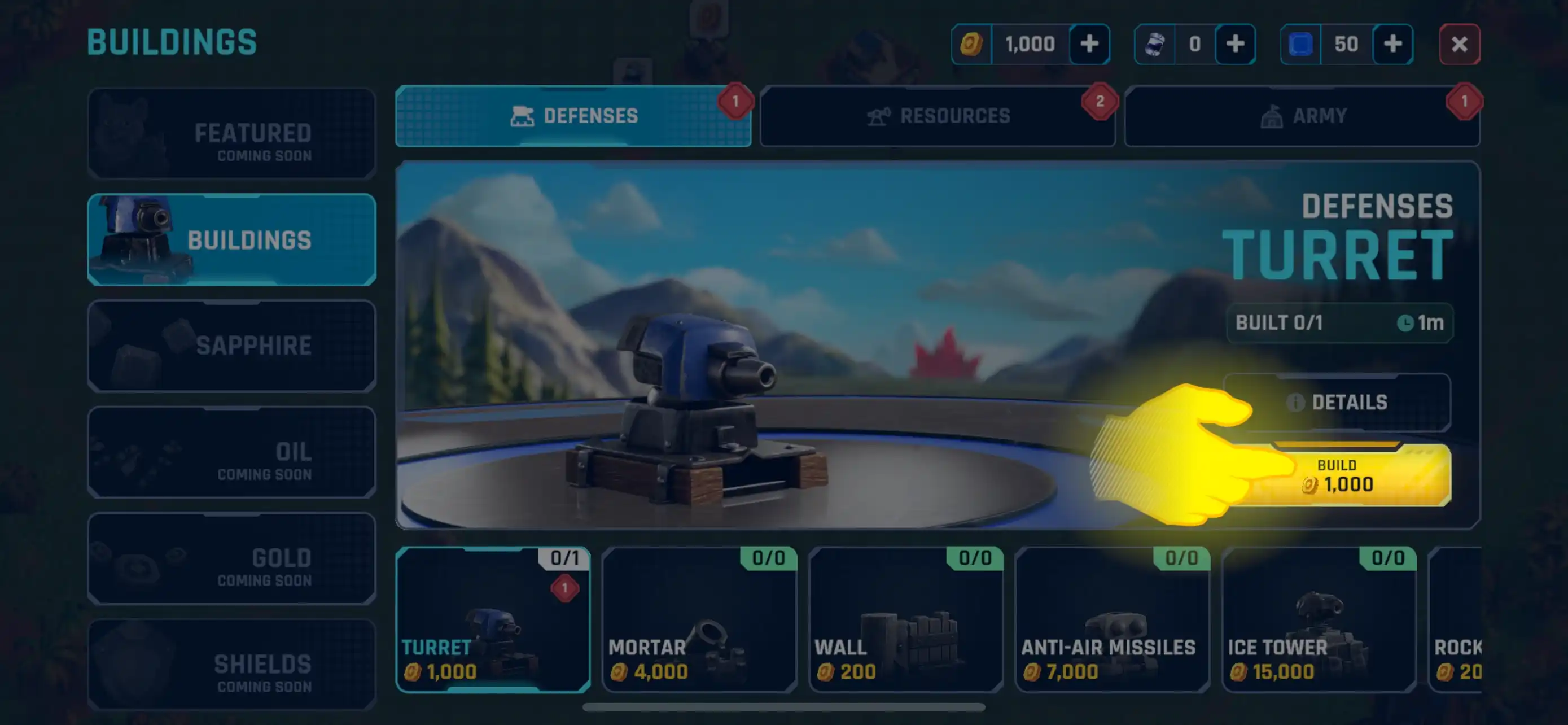 (1)游戏中基本资源为「金币」、「石油」,通过获得更多的「金币」、「石油」购买或升级建筑物以提高战斗力(因购买或升级建筑物需要消耗「金币」或「石油」),并且随着级别的升高,「金币」会相对更加稀缺;