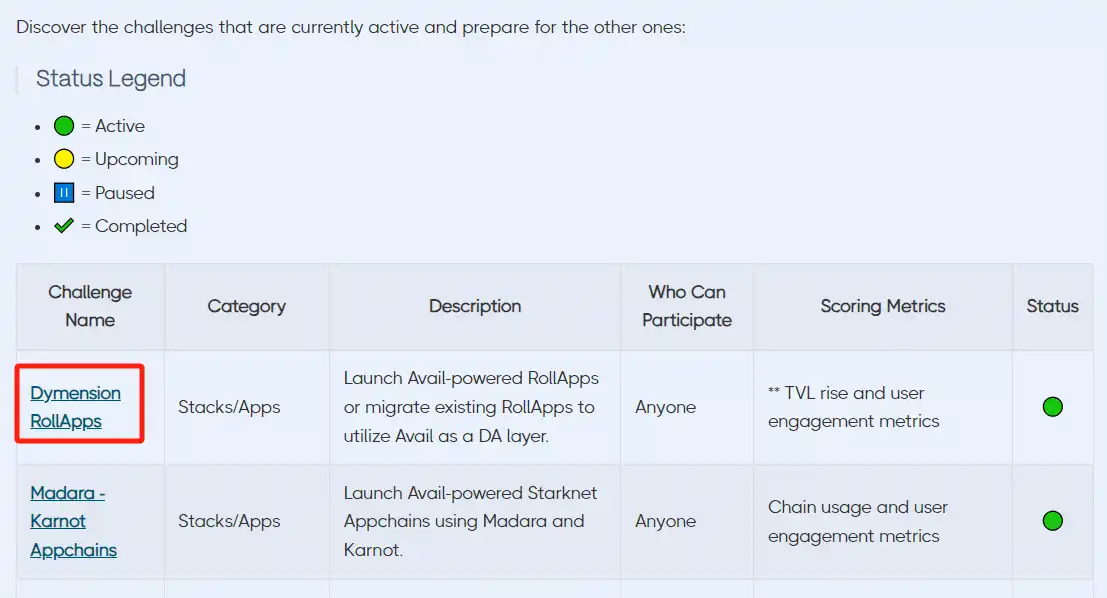 2023 年 11 月,Avail 开启了 Clash of Nodes 激励测试网,用户完成任务可获得积分。其中一个任务就是「使用 Avail 作为 DA 部署 Dymension RollApps」,因此社区猜测,质押 DYM 也可能会获得 Avail 的未来代币空投奖励。