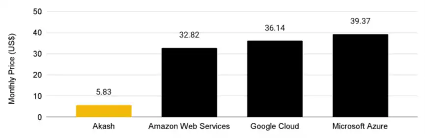 值得注意的是,使用 Akash 服务的价格极具竞争力,通常只是其他中心化云提供商的一小部分。一个关键的贡献者是其「反向拍卖」系统,该系统允许客户提交他们想要的价格,并让供应商竞争业务。