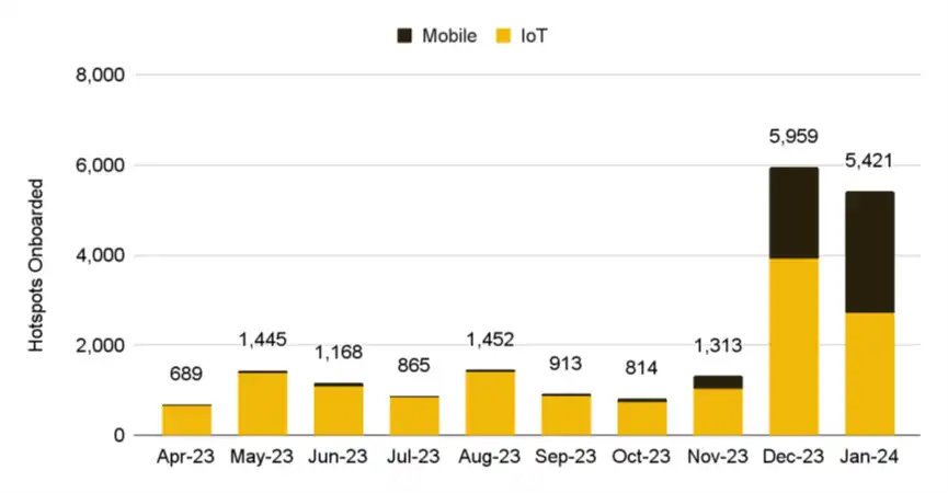 继 Helium Mobile 在全国范围内推出每月 20 美元的无限数据、短信和通话电话计划,以及 Solana Saga 智能手机销量激增(免费订阅 Helium Mobile 的 30 天)之后,Helium Network 见证了近几个月新热点的激增。