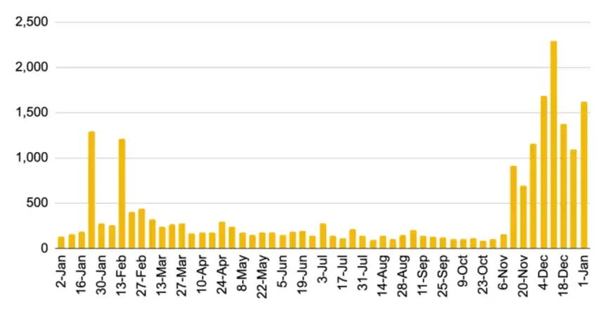 图 12:近几个月来每周新增贡献者的数量有所增加;资料来源:Dune Analytics(@murathan),截至 2024 年 1 月 17 日