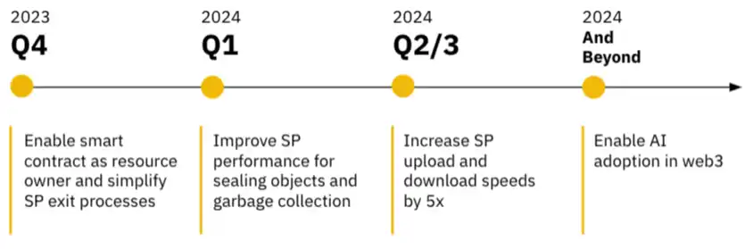 展望未来,BNB Greenfield 正在进行几项开发,计划改善用户体验并推进去中心化存储的效用。在最近发布的路线图中,用户可以期待增强的性能、跨链支持和人工智能采用等。