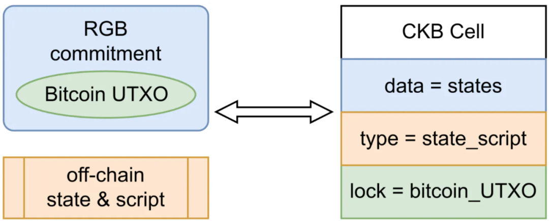 1)作为 RGB 容器的 UTXO 可以和 CKB 的 Cell 进行映射,通过 Cell 中的 lock 来实现。