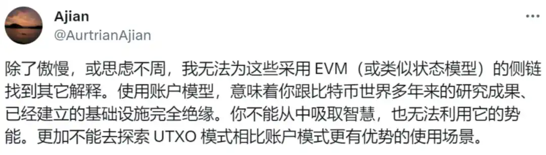 这部分可能包括「基于跨链协议的 L2」、「基于 EVM 的 L2」等,我基本赞同 Ajian 老师的看法: