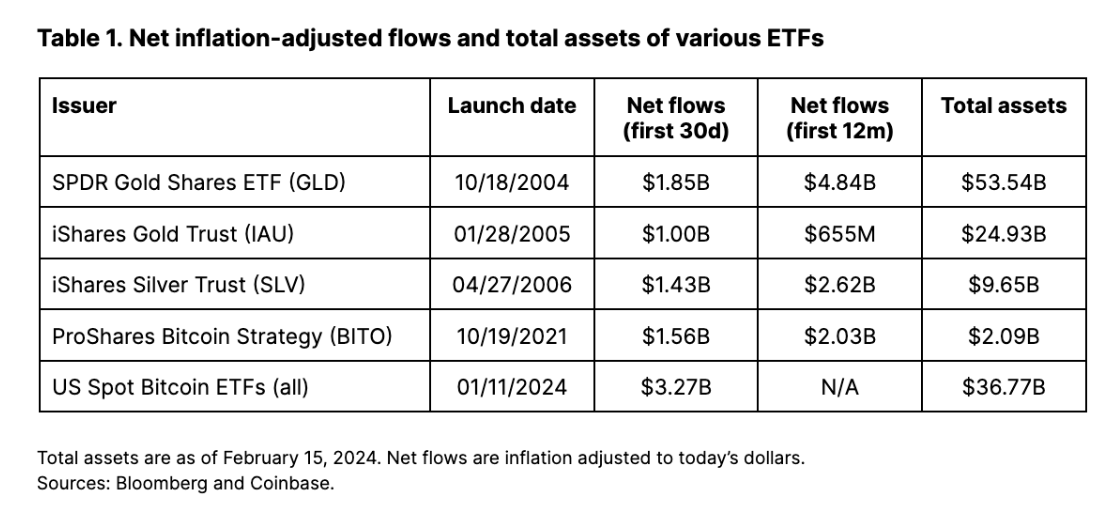与此同时,它还进一步强调,比特币 ETF 前 30 天的净流入量超过了 State Street 的 SPDR Gold Shares ETF 首月的净流入量。