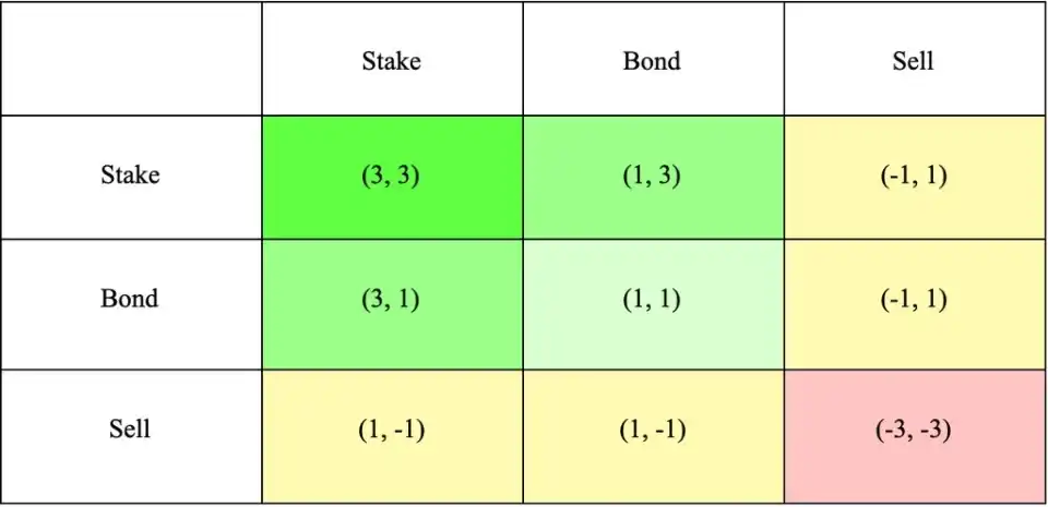 囚徒困境理论拆解的质押、持有、出售三种模式下的获利模型;图源网络