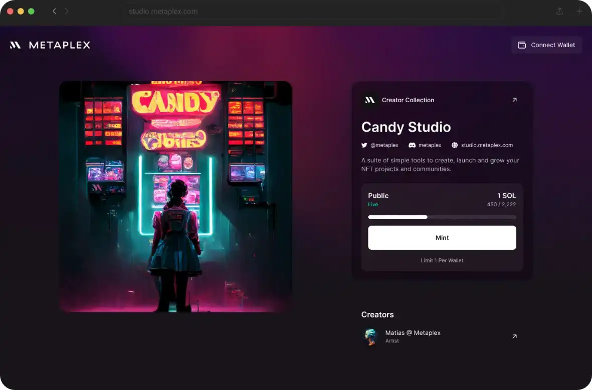 如果您有兴趣创建自己的 NFT,请考虑查看 Metaplex Studio,它可以在 Solana 上发布 1/1、开放版本和集合。与以太坊上的 Zora、Manifold 和 Highlight 不同,我个人还没有在创作者方面尝试过 Metaplex,但它无疑是当今 Solana NFT 场景中的领先选择。