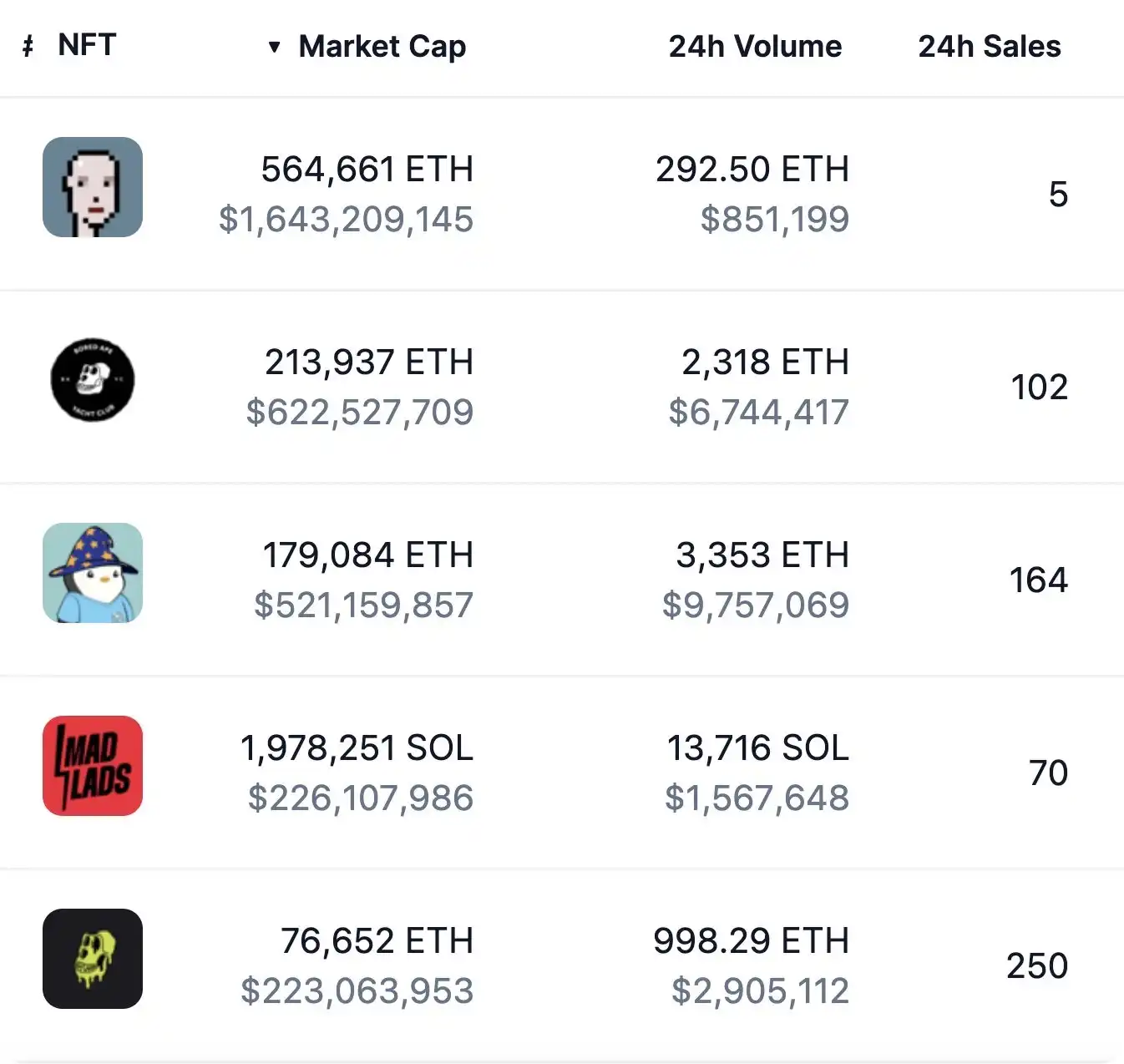 其他顶级系列:虽然 Mad Lads 超出了许多人的价格范围,但 Solana 上还有许多其他系列价格较低的系列,并且也获得了相当大的吸引力。当前的一些杰出系列包括: