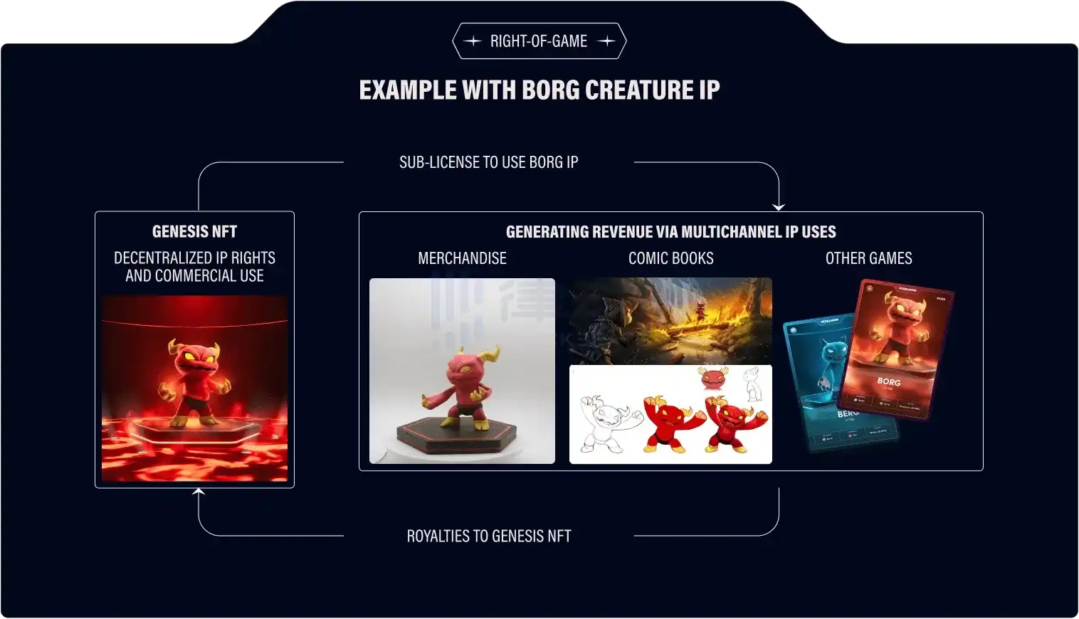 Genesis NFT 包括特定资产的 IP 所有权,面向有兴趣获取艺术品,希望发掘、谈判和商业化与该艺术品相关的 IP 的各方。而游戏 NFT 是面向消费者/游戏玩家的产品。