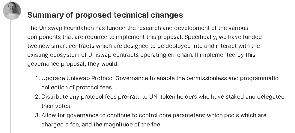 据了解,这次提案建议升级 Uniswap 协议,拟议变更包括: