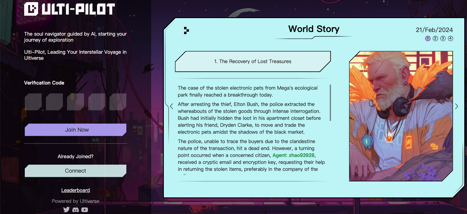 Ulti-Pilot 目前更像一个以游戏为载体的门户,让用户感受 AIx 元宇宙 xWeb3 这三者碰撞后所产生的想象空间,为 Ultiverse 之后的发展做铺垫。