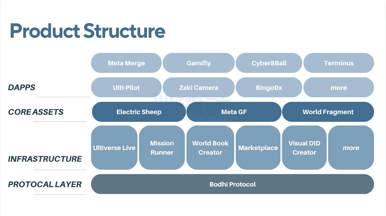 Ultiverse 与其生态合作伙伴的关系最初表现为 Ultiverse 帮助这些游戏进行营销传播,通过空投激励吸引 Ultiverse 用户。但 Ultiverse 并非止步于游戏一站式平台,而是希望借助 Web3、AI 和 VR 技术,打造一个 MetaFi 平台,每个游戏在其中都代表着一个微型世界。为此,Ultiverse 创建了 Bodhi 协议,以生成式人工智能的方式连接这些微观世界。