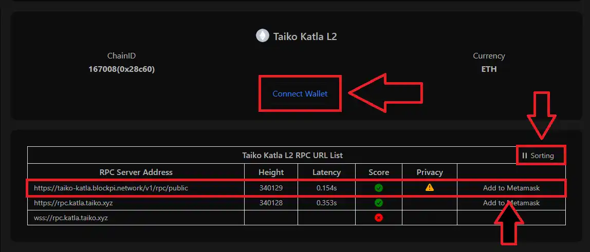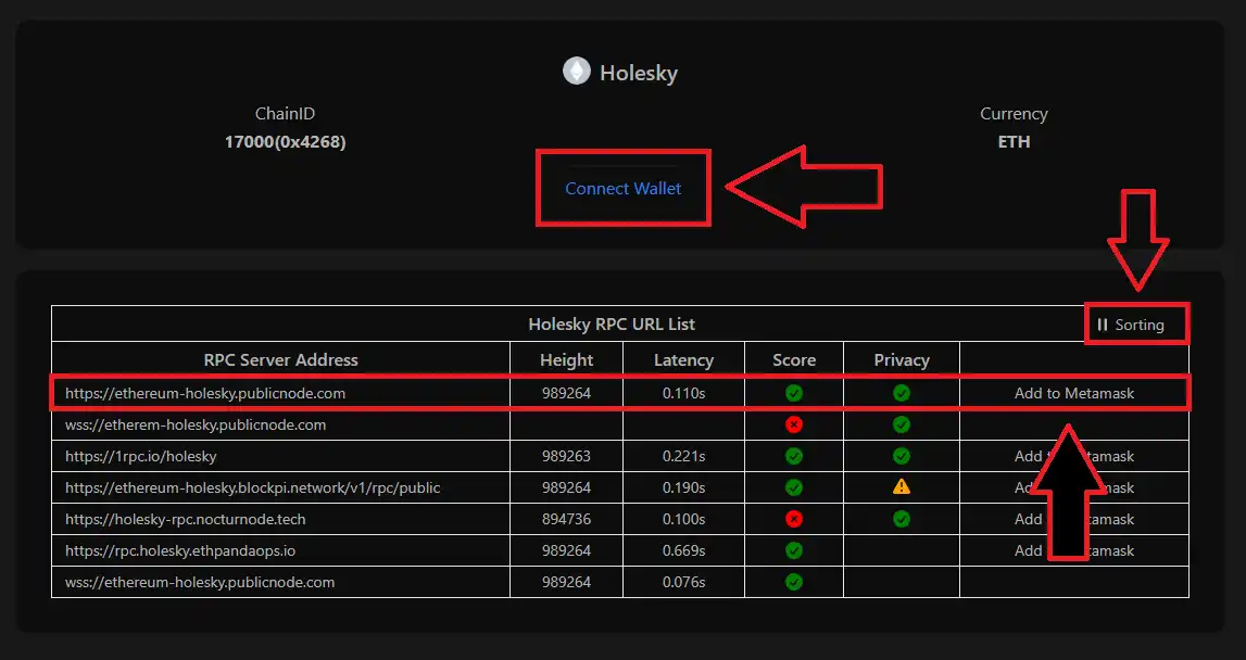· 找到适合的 RPC 并点击「添加到 Metamask」