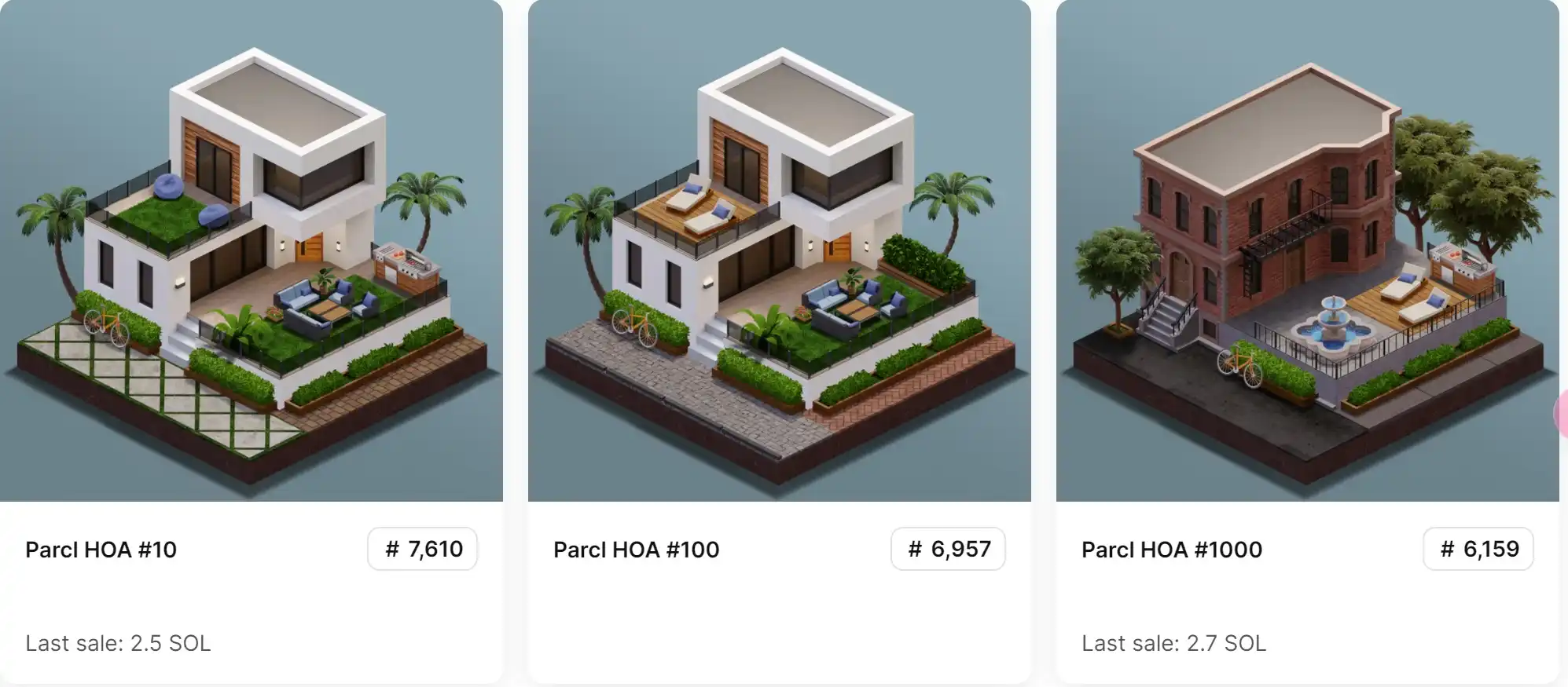 2.NFT 持有者:Parcl 在 2022 年 5 月发行的「Homeowners Association」,发行价 0.5 SOL,但发行不到半年就跌破发行价;受空投预期影响, 2023 年底价格涨至 15 SOL,目前 Opensea 上无人售卖。