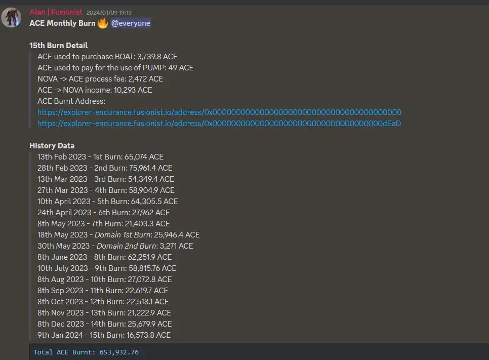 ACE 还设置有代币销毁规则,网络上的收入有 20%—40% 每两周进行一次销毁,以维持代币价值的稳定性。