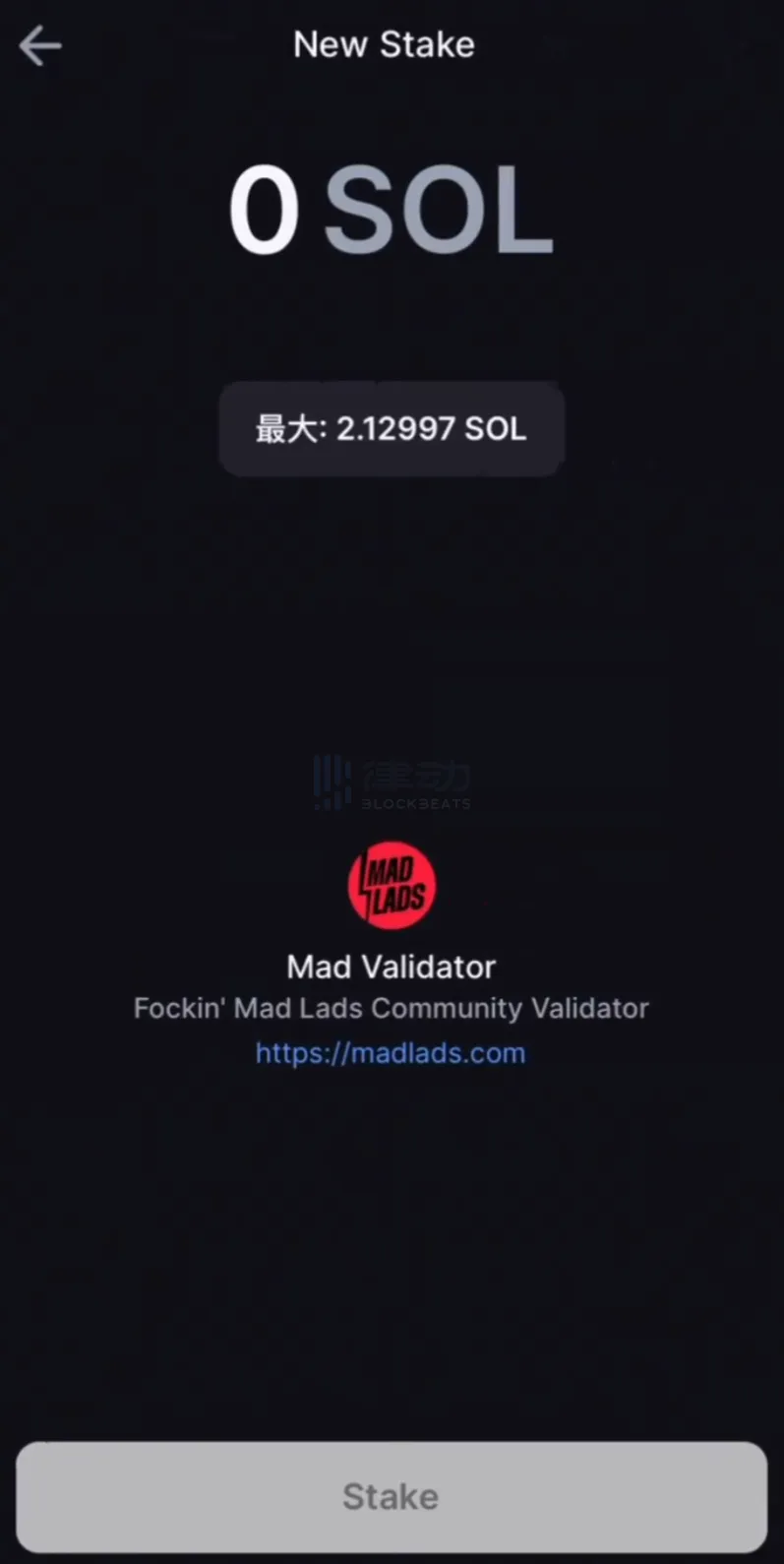 点击 Staking 后,再点击 Add Stake,输入自己想要质押的 SOL 数量,再点击 Stake 然后确认交易,SOL 就开始生息了。