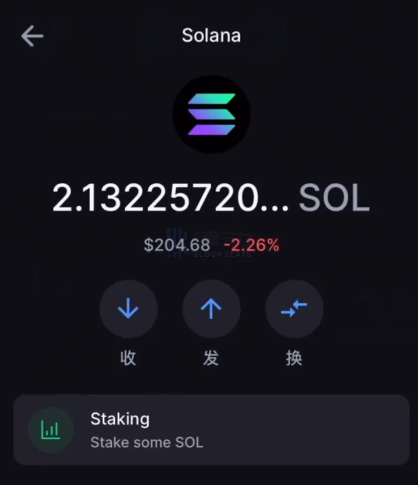 如果有闲余的 SOL 想要让其产生收益,在 Backpack 钱包中一键就可以实现。只要点击在钱包主界面点击 SOL 进入 Token 详情页,就可以看到质押。