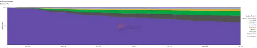 从 1 月 10 日开始,贝莱德的 IBIT 持有的比特币一直在持续增长,从 228 个比特币增持到如今的 12.69 万个比特币。作为全球最大的资产管理公司,其在全球管理的资金规模约为 8.9 万亿美元。无论从客户资源还是品牌效果上,都是众多 ETF 产品中最具竞争力的一支。目前,贝莱德管理和富达投资的比特币 ETF 持仓量已超过 MicroStrategy 公司的 19 万个。