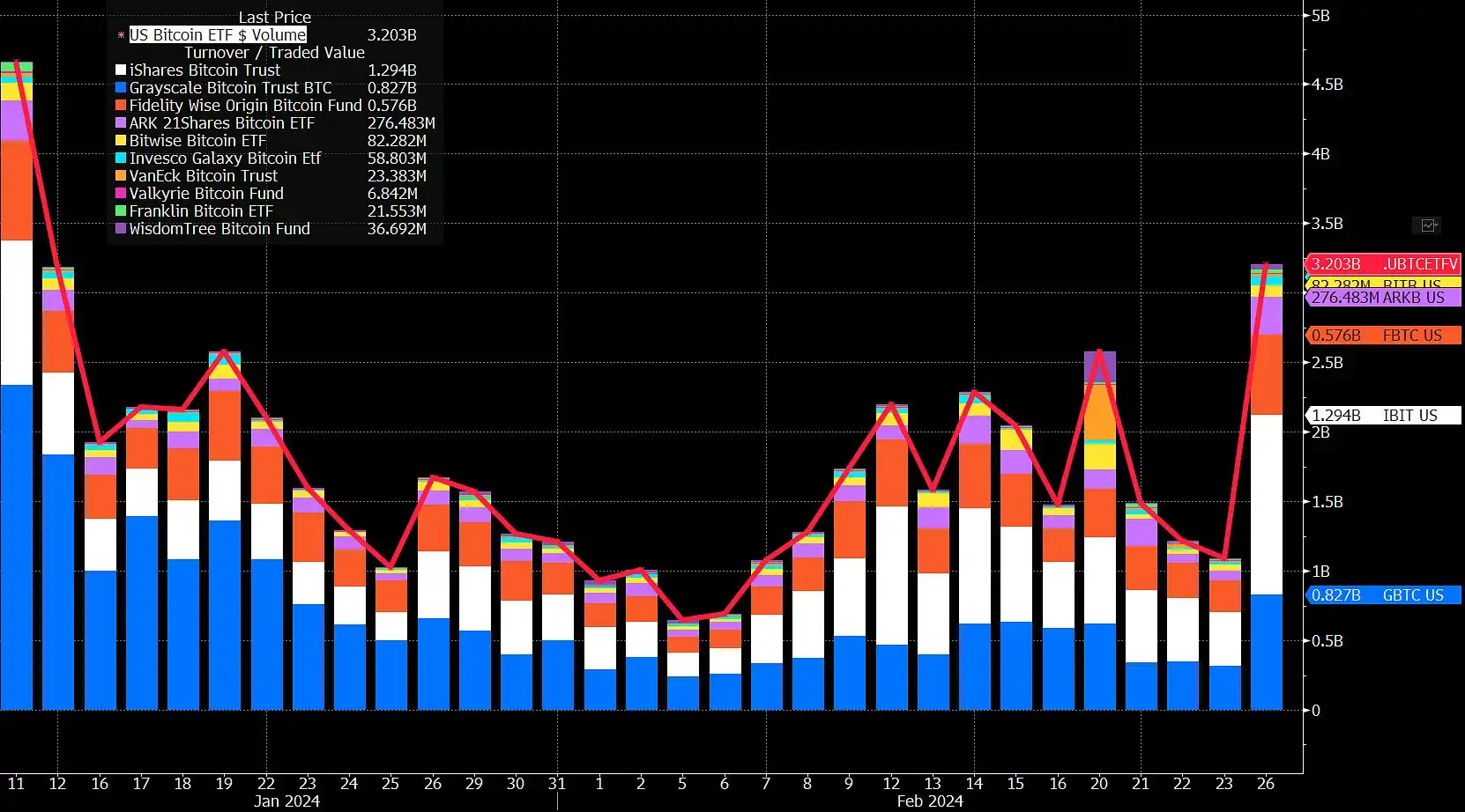 相关阅读:《比特币 ETF 通过 40 天,到底有多少资金入场?》