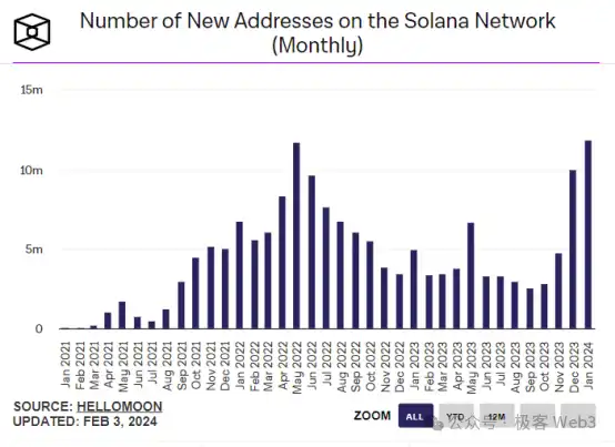 (造富效应让许多新用户重新活跃于 Solana 链上)