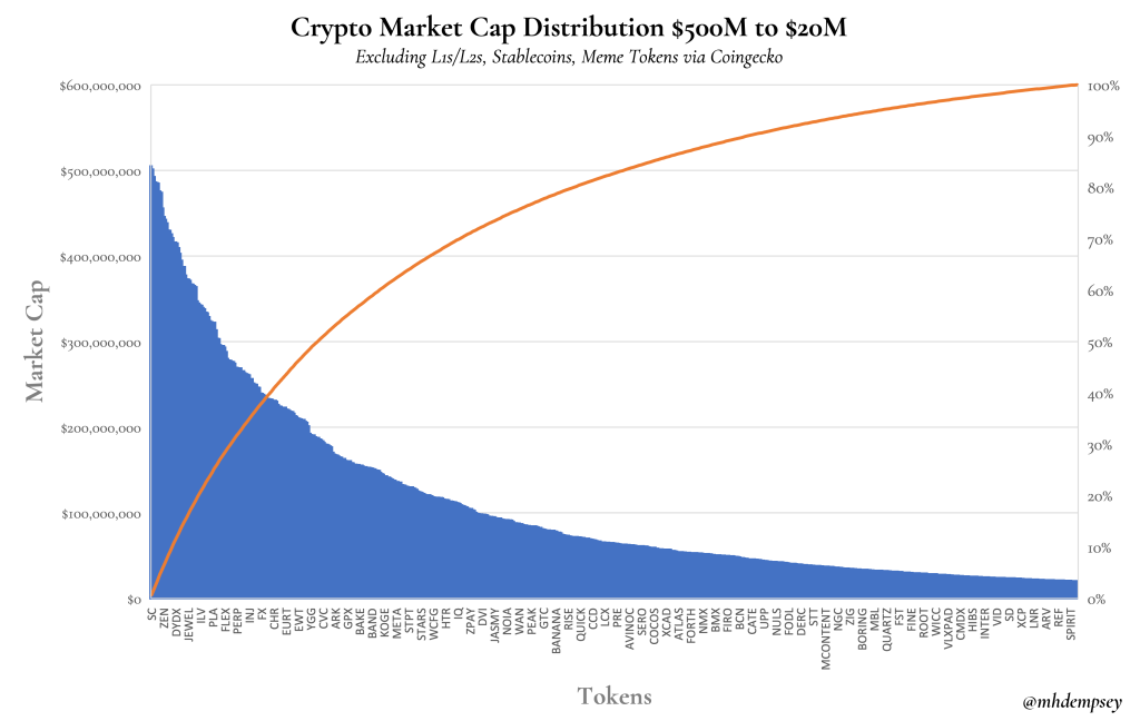 最初的胖协议论文在 L1 价值累积方面得到了很好的理解,但这也意味着您在 Dapp 中看到了更多的长尾动态,这意味着从成功机会百分比的角度来看,幂律更少(即许多代币将值得*某事*,而很少有人会变成 0,正如我之前所写的)。