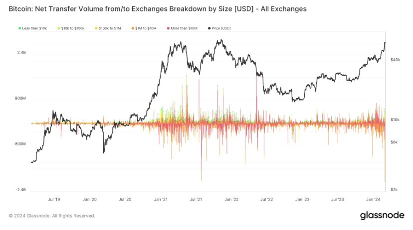 3 月 3 日,加密货币洞察公司 CryptoSlate 的研究和数据分析师詹姆斯-范斯特拉顿(James Van Straten)在 X 上发表文章,指出了数十亿美元的 BTC 提现。